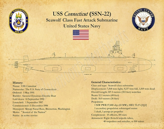 Uss Connecticut Submarine Blueprint Seawolf Class Nuclear Etsy Israel